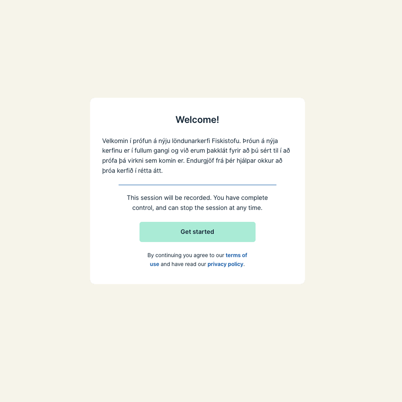 Fá endurgjöf frá notendum á nýtt viðmót og virkni. Starfsfólk Fiskistofu mun nýta endurgjöfina við áframhaldandi þróun kerfisins.