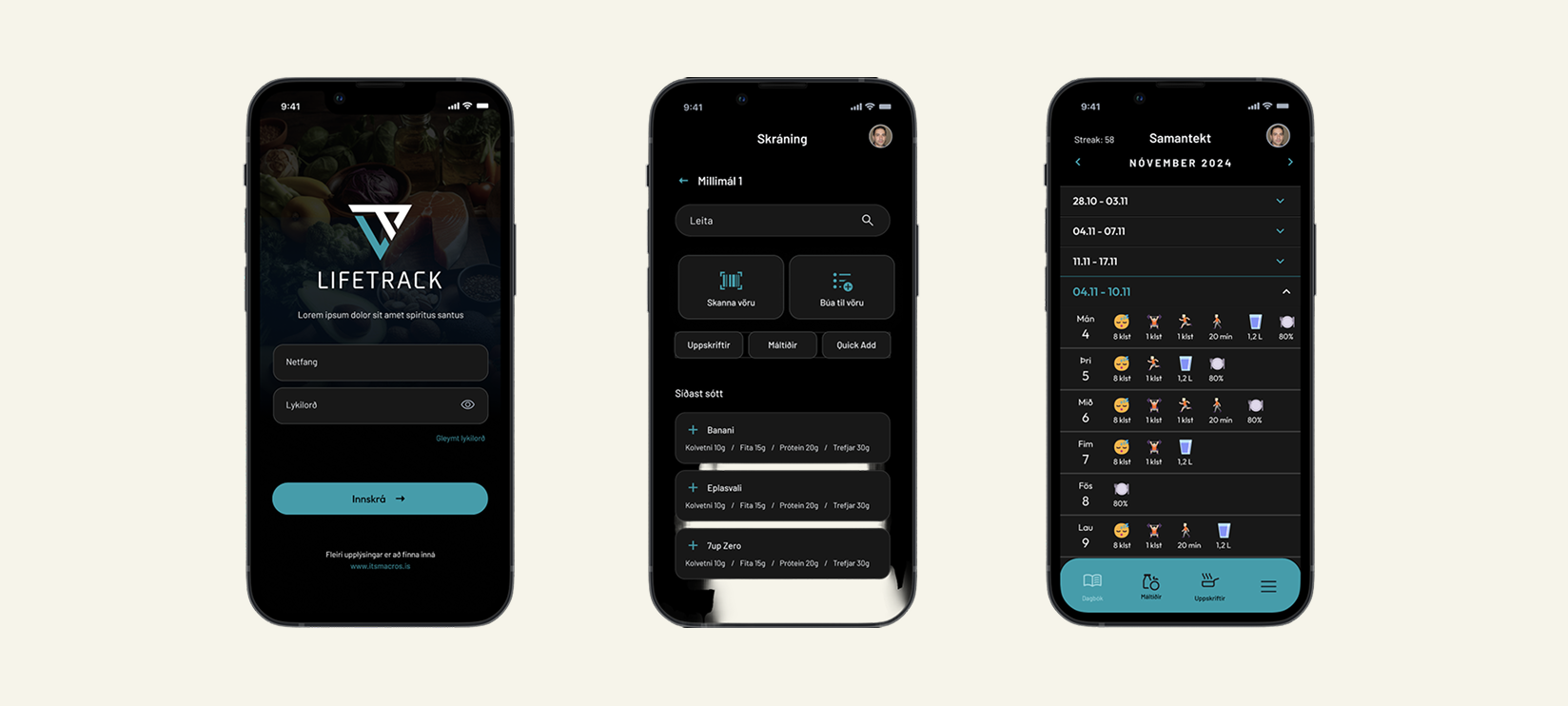 Notendaviðmótið í LifeTrack, ásamt öflugum gagnagrunni og reiknivél fyrir orkuþörf, miðar að því að einfalda lífið en ekki flækja það.