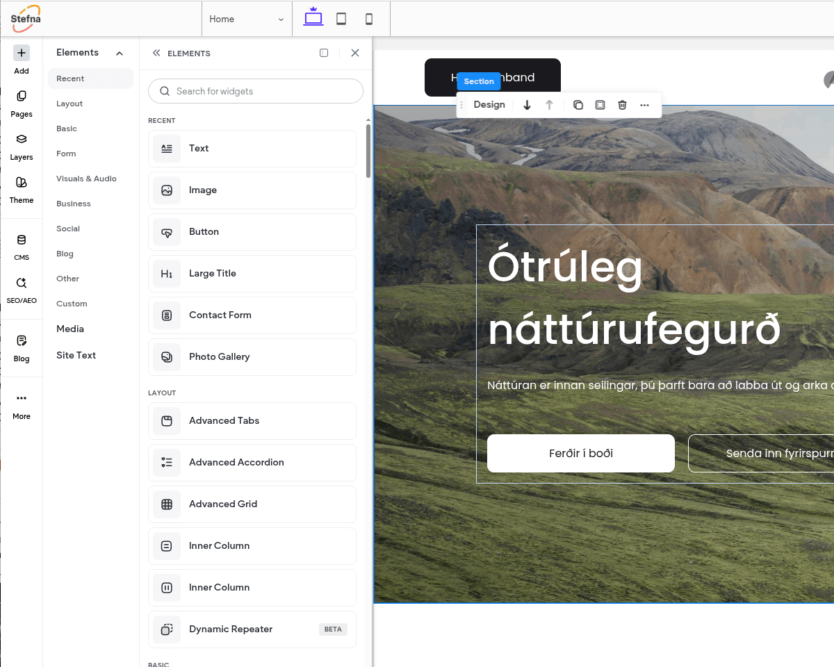 Flex er í skýinu, þú þarft ekki að pæla í uppfærslum eða viðbótum (plugins) sem hætta að virka. Hraðinn er tryggður (í Core Web Vitals) og hönnunarviðmótið er eins einfalt og Wix en okkar teymi í forritun og þjónustu tryggir að þú færð svör við öllum þínum spurningum.